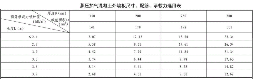 加氣混凝土板材內(nèi)墻板尺寸、配筋選用表